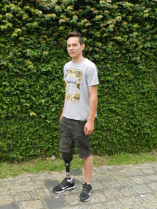 “Meu nome é Cristian, tenho 22 anos, sofri um acidente de moto e tive que amputar a perna direita abaixo do joelho.